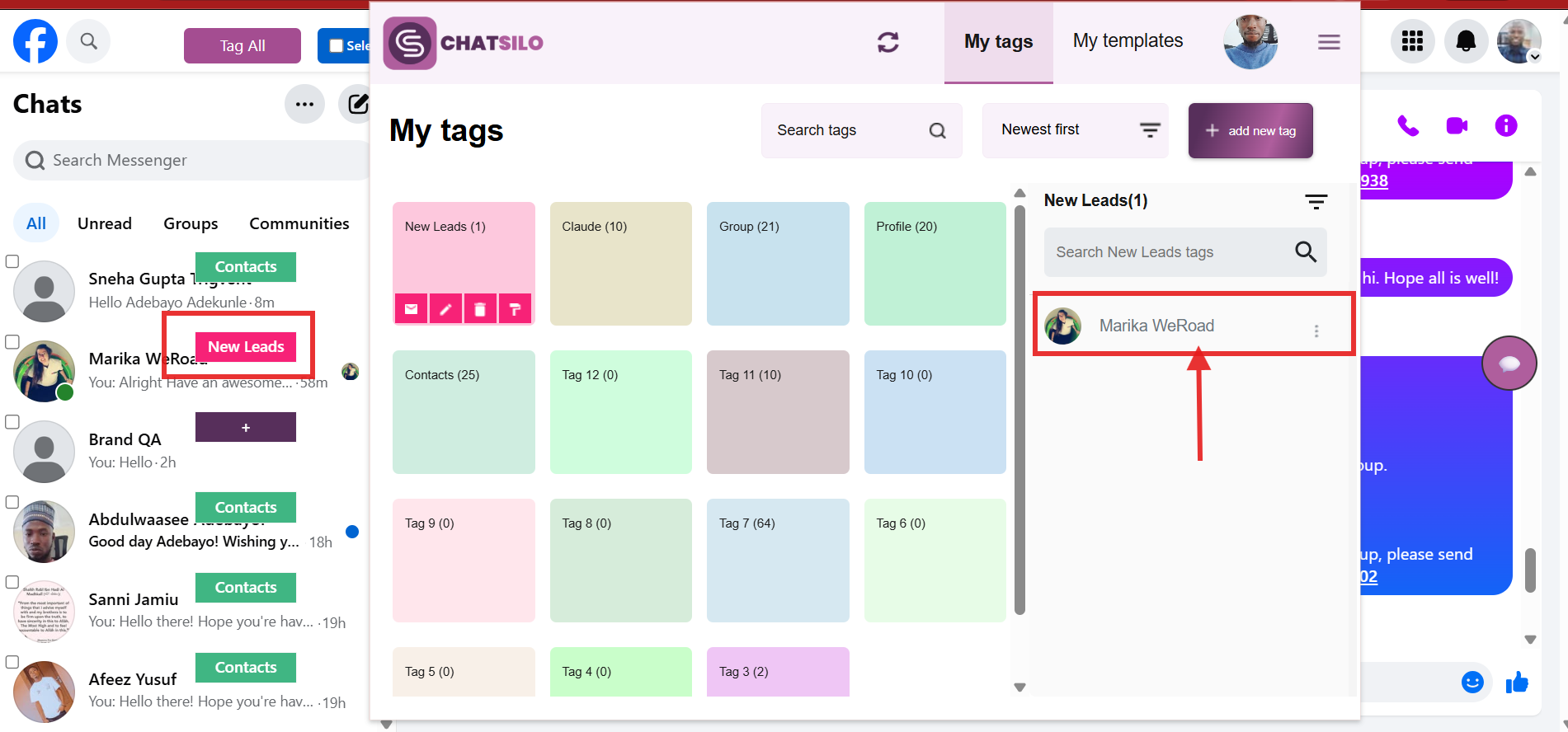 This tutorial shows you how to assign a Facebook contact to an existing ChatSilo tag, so you can keep your conversations organized and easy to find.