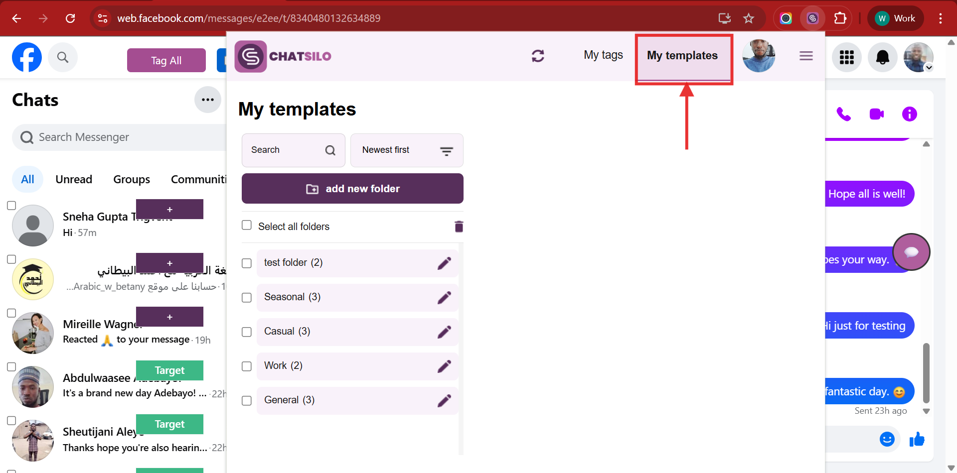 Step 1: Open the ChatSilo Extension and Go to the Template Tab