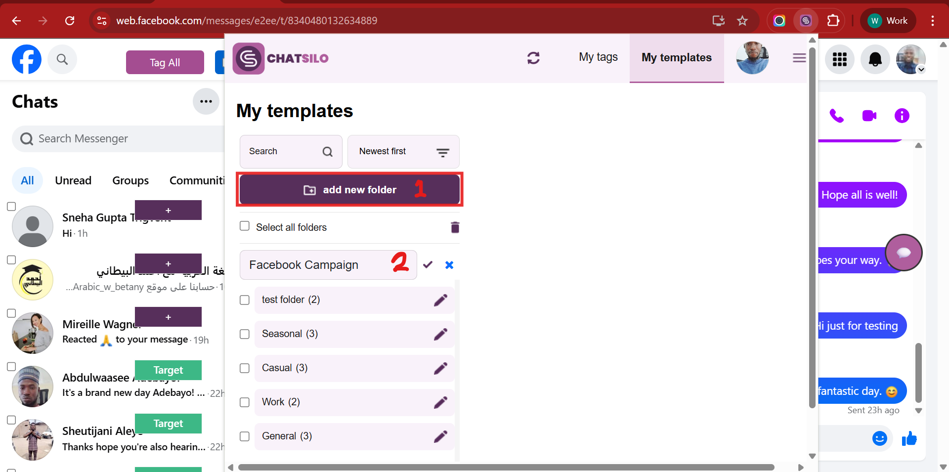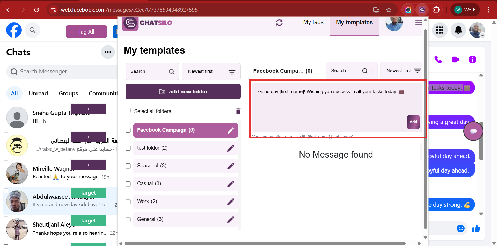 Save time and stay consistent by creating reusable template messages in ChatSilo — organized neatly into folders for easy access.